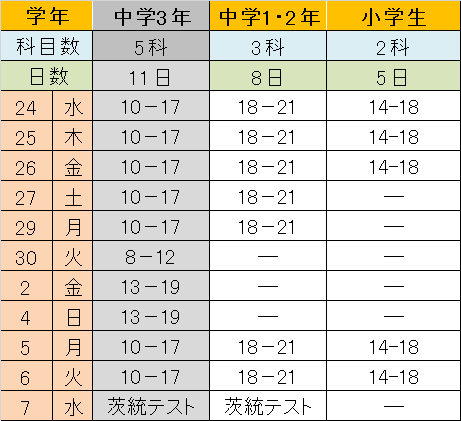 中学生は茨城統一テストを実施致します。